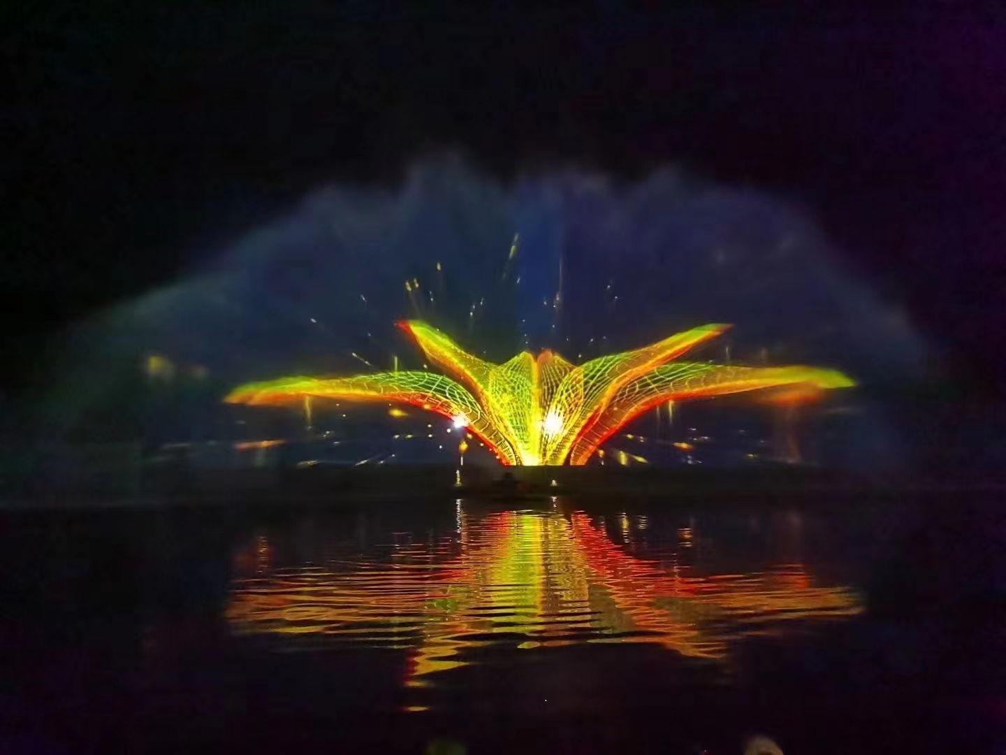 ? ? ?水幕電影是通過(guò)高壓水泵和特制水幕發(fā)生器,將水自下而上,高速噴出,霧化后形成扇形“銀幕”,由專用放映機(jī)將特制的錄影帶投射在“銀幕”上,形成水幕電影。當(dāng)觀眾在觀摩電影時(shí),扇形水幕與自然夜空融為一體,當(dāng)人物出入畫面時(shí),好似人物騰起飛向天空或自天而降,產(chǎn)生一種虛無(wú)縹緲和夢(mèng)幻的感覺(jué),令人神往。
